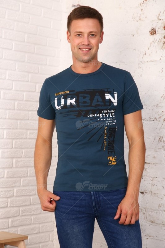 Мужская футболка из кулирки. Короткие рукава, круглая горловина, украшена печатью, прямой силуэт. Состав: 100% хлопок,ткань рибана.