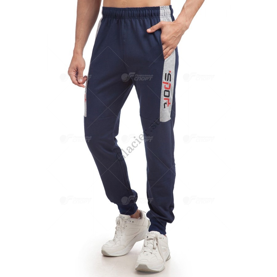 Прямой силуэт, прорезные карманы с листочками, пояс на внутренней резинке. Внизу - резинка (манжет).Ткань: футер 2-х нитка.Плотность: 250 г/м2.Состав: 65% хлопок/30% полиэстер/5% лайкра