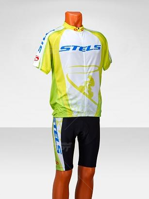 Ветровка SDK-M002 спортивная мужская, с короткими рукавами, короткой молнией и карманами. Материал: 100 % полиэстер. Цвет: бело-зелёно-салатовый с логотипом STELS.