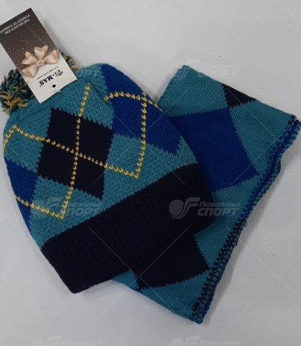 Описание: Комплект — шапка с помпоном из пряжи, шарфик. Двойная вязка. Производитель — Vi-Mas (Китай).