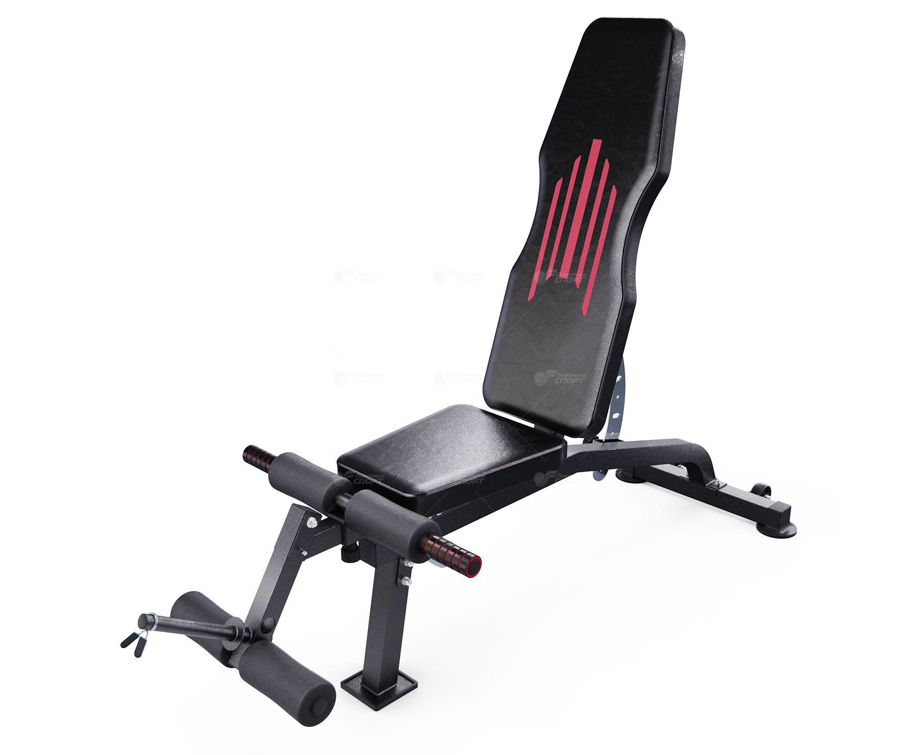 Скамья спортивная оснащена 11 уровнями наклона спинки и 3 положениями сиденья, что позволяет выполнять разнообразные упражнения для проработки всех групп мышц. Оптимальная высота сиденья 43 см делает тренировки комфортными для людей любого роста. В комплекте также идут 4 мягких валика из вспененного материала для фиксации ног в разных положениях. Длина посадочного места под диски 18,5 см, посадочный диаметр для дисков равен 25 мм. В комплекте идёт пружинный замок для дисков.